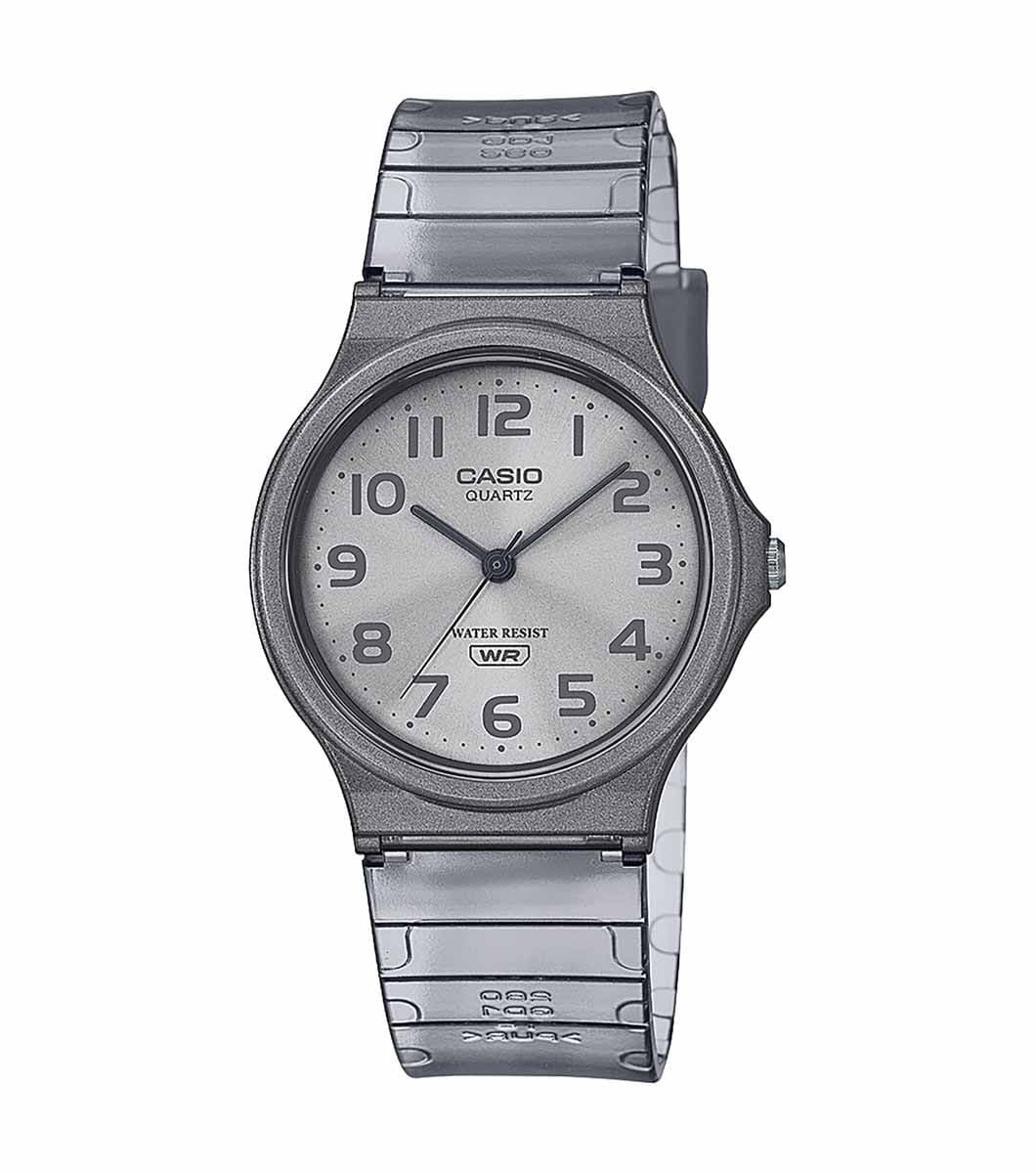 The best-selling MQ-24 is back in colourful translucent designs! This watch features a metallic case, sunburst-finish dial and band that come together in harmonized monochromatic colour. A simple design with basic hour, minute and second hands, water resistance for daily use and a lightweight, comfortable fit.